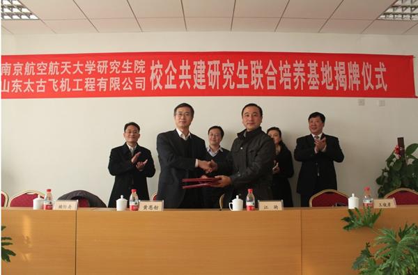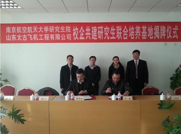 2013年12月6日,我校与山东太古飞机工程有限公司共建研究生联合培养基地签字暨挂牌仪式在济南顺利举行。出席仪式的有山东太古飞机工程有限公司总经理黄恩舫、副总经理杨光耀、培训部韩勇强经理、技术中心顾辉主任、技术工程部常城经理,南航大研究生院副院长江驹、AWC万象城娱乐副院长赖际舟、电气工程系副主任陈新以及公司所有领导和部分员工,签字挂牌仪式由韩勇强主持。