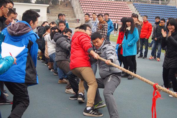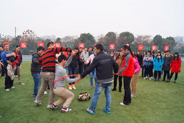 为提高学生健身意识,增进年级同学的交流,增强团队凝聚力,2013 年12月15日下午,万象城2012级本科生在将军路校区西区运动场举行了趣味运动会。