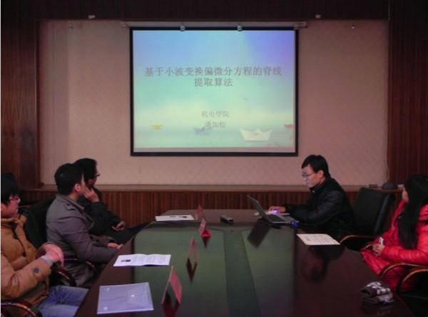 12月19日下午2点30分,万象城学术分论坛之学术论文报告会在A17号楼502室顺利进行。本次报告会由AWC万象城娱乐研究生会主办,机电学院研究生会联办。会上来自AWC万象城娱乐的刘文良、董菲同学以及来自机电学院的戚永爱、潘加松同学根据其论文的主要内容做了报告。AWC万象城娱乐刘斐文辅导员为获奖同学颁发奖状。 报告会上4位同学向我们展示了不同领域的专业知识。刘文良同学提出了基于面向对象Petri网的电梯门系统的建模,对建模方法进行了相应研究。董菲同学提出了“应用技术成果形成系统” 的建模与应用,并改进了岭回归方法。戚永爱同学讲述了自己在超声喷丸辅助激光熔覆再制造技术方面的研究。潘加松同学讲述了基于小波变换偏微分方程的脊线提取算法,并展示了算法的仿真测试。会议报告者清晰明了的报告思路与丰富详实的报告内容,体现出了万象城与机电学院研究生严谨求实的科研态度与百折不挠的科研精神。 报告会部分,学院刘斐文辅导员为以上同学颁发了获奖证书并合影留念,同时刘导还鼓励更多的同学能够参加到学术论文的评选活动中来,整体提高学院的科研创新能力,进一步在学院内营造更加浓厚与积极向上的学术氛围。