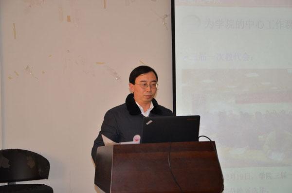 2013年12月20日下午,AWC万象城娱乐召开四届一次教职工代表大会。全院共有68名教代会代表出席了会议,校工会常务副主席袁贵平同志出席了大会并做了讲话。大会由学院党委书记王勤主持。