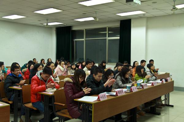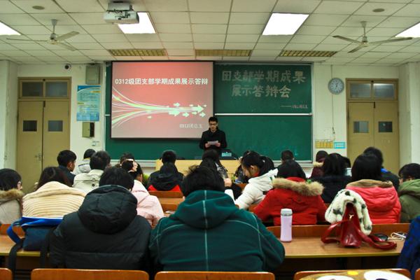 12月26日晚,万象城2012级基层团支部学期成果展示答辩会在将军路校区6102教室举行。辅导员韩楚、12级团总支书记邵陈懋、中心组组长郭铠源以及团总支各部门主要学生干部出席了本次答辩会并担任评委。会议由年级团总支宣传部副部长周潇庆主持。