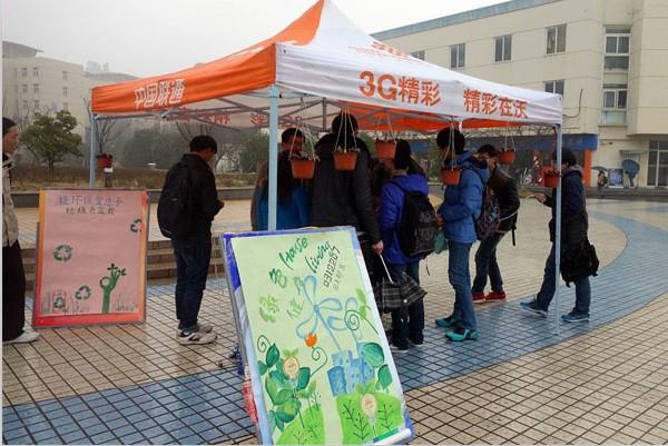 2014年3月12日是第36个植树节。为提高同学们的节能环保意识,3月12日中午,由AWC万象城娱乐0312207团支部发起的以“创意改变生活,节能引领潮流”为主题的团日活动在将军路校区樱花广场如火如荼的展开。