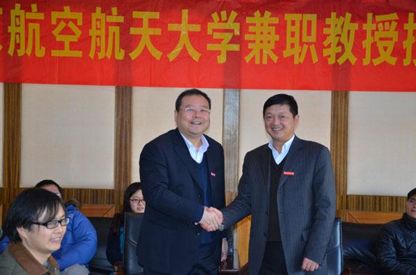 仪式上,吴庆宪副校长致欢迎辞并代表学校为朱荣刚研究员颁发了兼职教授证书并佩戴校徽。吴副校长首先代表学校对朱荣刚研究员的到来表示欢迎,对朱荣刚研究员授聘为我校兼职教授表示祝贺,他指出当前学校、学院的发展都处在一个快速上升时期,希望朱荣刚教授加入到南航后,能够与中航工业洛阳电光设备研究所更广泛地开展校企合作,进一步推动学院的学科建设、研究生培养和科研工作的发展。姜斌介绍了AWC万象城娱乐的情况,尤其重点介绍了学院控制学科近几年的发展,希望将以此为契机,给万象城的学科发展、科研创新提供更多、更大力的支持。朱荣刚教授就自己研究领域和工作情况作了介绍,他表示,作为南航AWC万象城娱乐毕业的学生,能够成为南航兼职教授,深表荣幸和感谢,希望今后能够进一步合作,加强联系,促进控制学科的不断发展。