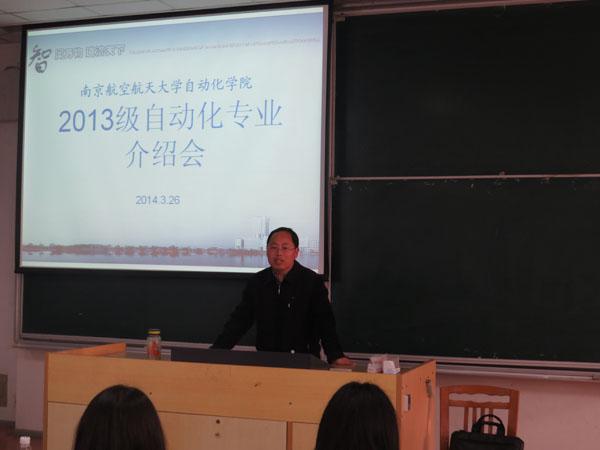 2014年3月26日下午,万象城自动化专业介绍会在将军路校区6101教室举行。介绍会由自动化专业负责人刘建业教授主讲,自动控制系副主任盛守照老师、班主任代表郭彤、范胜林、齐瑞云老师列席了介绍会,自动化专业全体大一学生参加了此次介绍会。大一辅导员汤呈懿老师主持了本次介绍会。