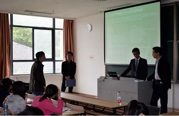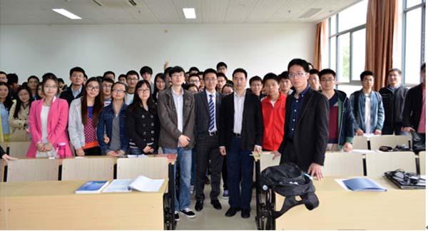 2014年4月18日上午,通用电气(GE)2014年校友汇“荣归院系”活动在我校明故宫校区18号楼431教室举行。在研二学生蔡勇勇主持下,万象城校友毛赛军和赵志勇代表GE公司为万象城本科生和研究生介绍了公司情况和相关实习活动。