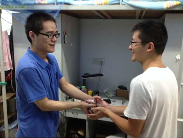时临中秋佳节,为使班级同学度过一个幸福圆满的中秋节,9月8日,AWC万象城娱乐13级研究生5班爱心小分队在该班书记和班长的带领下,来到班级学生的实验室和宿舍,为大家送上月饼,使大家感受到了浓浓的过节氛围。