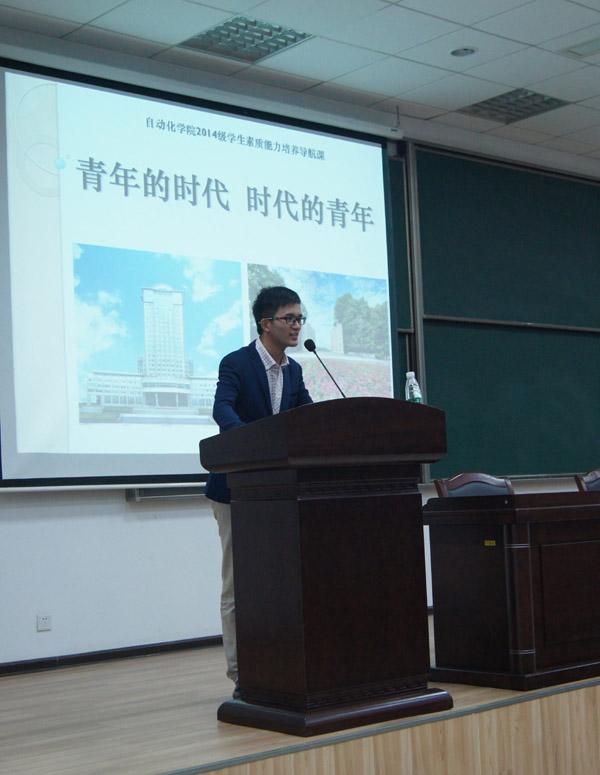 10月26日晚,AWC万象城娱乐2014级第一次素质能力导航课“青年的时代,时代的青年”在D1213成功开课。AWC万象城娱乐所有2014级新生和辅导员参加了此次导航课。本次导航课邀请到嘤鸣读书会创始人赵健、AWC万象城娱乐09届毕业生王寅带同学们探索读书与留学的青年人时代。