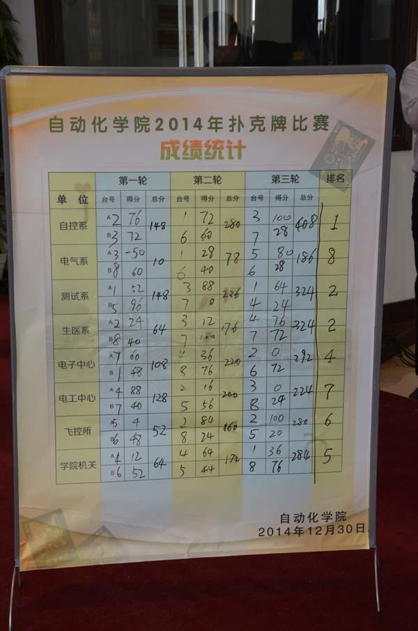 本次比赛规则沿用学校工会扑克牌比赛的传统规则,学院每个基层单位选派2组参赛队员,经过3轮比赛,累计总分确定排名。比赛中,各个基层单位都非常重视,学院副院长、多位系主任都亲自上阵,各个单位都来了不少加油助威者。参赛者全神贯注、谨慎出牌;旁观者沉默观战、细心学习。