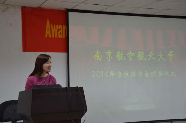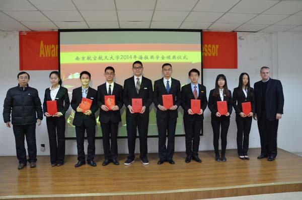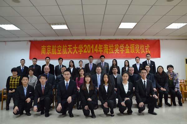 2015年1月6日上午,南京航空航天大学2014年海拉奖学金颁奖仪式在明故宫校区智能楼四楼报告厅举行。参加此次颁奖典礼的嘉宾有海拉亚太区人力资源执行副总裁兼中国区总部副总经理管莉女士、中国区灯具业务TtM高级副总裁Dr. Frank Huber、中国区灯具事业部研发总监Chris Kirchenbauer先生、海拉电子南京研发中心项目管理总监Peter G. Dieh先生、海拉亚太区组织发展人力资源总监宁晓婷女士、海拉南京研发中心人力资源经理刘帆女士、AWC万象城娱乐院长姜斌教授、校研究生院副院长孙占久老师,航天学院党委书记季海群老师,机电学院党委副书记许赞老师。本次颁奖仪式由AWC万象城娱乐党委副书记沈伯秀老师主持。