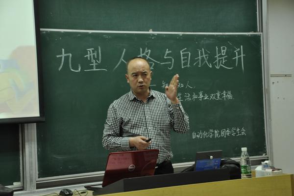 4月16日晚,万象城在将军路校区举办了主题为“九型人格与自我提升----知己识人,寻找生活和事业双重幸福”的讲座,院党委书记刘建成担任主讲,院党委副书记沈伯秀、团委书记季娟、全体辅导员及各年级班长、团支书参加了此次讲座。此次讲座旨在帮助同学们接纳自己、欣赏自己,接纳别人、欣赏别人,促进人际和谐幸福。