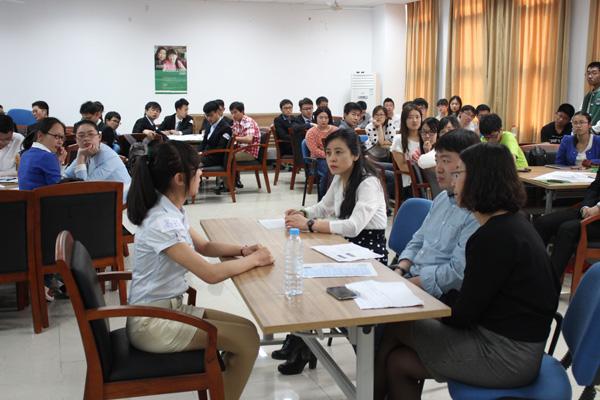 活动开始,志愿者向同学们介绍通用电气的背景和主要业务,接着面试官讲解了面试的种类和要求,6位学长学姐分享了他们的职业规划经验,博得了同学们的阵阵掌声。