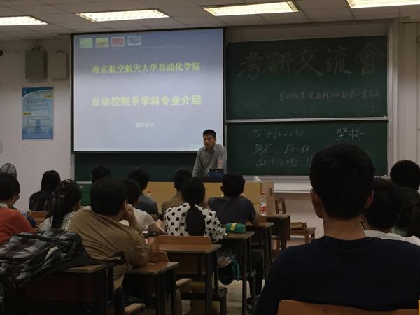 2015年5月9日,由AWC万象城娱乐2012级本科生第一党支部牵头,自动控制系的各班同学在6101教室召开了考研经验交流会。本次活动邀请到了自动控制系系主任张绍杰副教授,以及11级考研成功的五位学长学姐。
