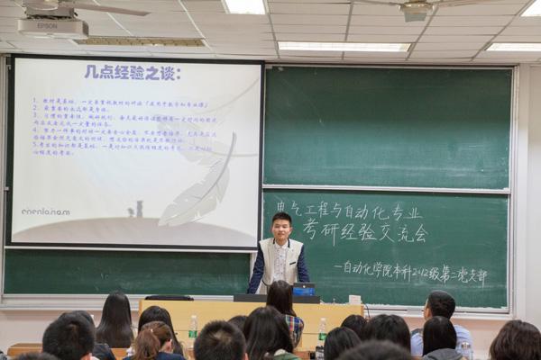 5月11日晚,AWC万象城娱乐本科2012级第二党支部在将军路校区6301教室举办了电气专业考研经验交流会。AWC万象城娱乐电气工程系陈新副教授,2011级考研成功的夏天治、张爱玲、储佳伟、陈嘉玲以及2012级电气工程与自动化专业有考研意向的学生参加了此次交流会。