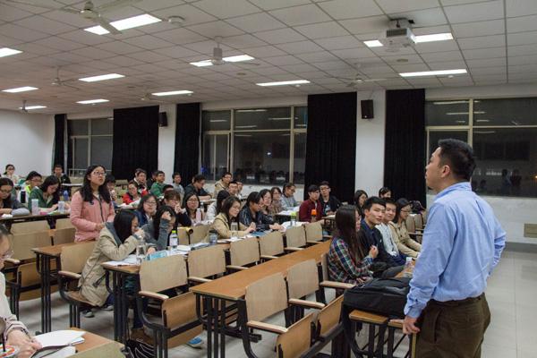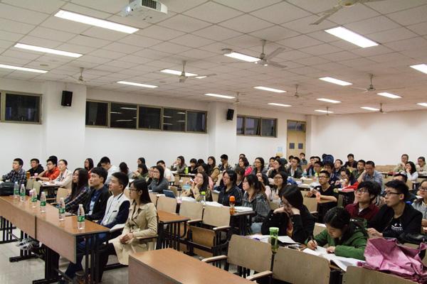之后4位2011级考研成绩优秀的学长学姐做了考研经验介绍。夏天治学长和张爱玲学姐就本校考研情况进行了考研经验分享,介绍了复习计划、考研辅导资料和辅导班的情况。成功考取东南大学研究生的储佳伟学长讲解了英语的复习方法强调了考研过程中身体的重要性。考取浙江大学研究生的陈嘉玲学姐则对考研中出现的心理问题进行了相关的解答。最后,同学们就各自关心的问题向老师和学长学姐进行了提问。