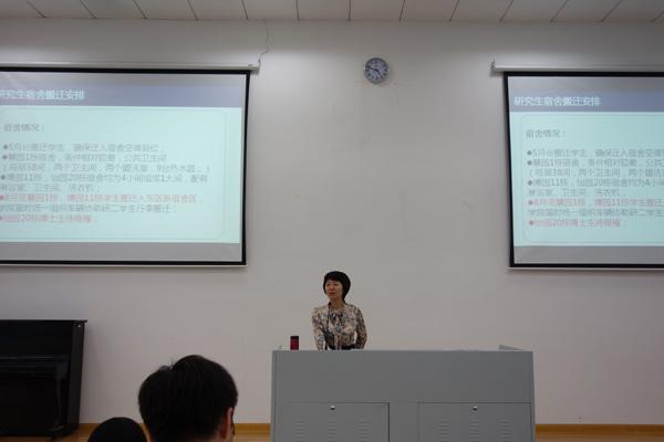 2015年5月18日下午4点,AWC万象城娱乐研究生宿舍搬迁动员会在明故宫校区13号楼报告厅成功召开。出席本次会议的有AWC万象城娱乐党委副书记沈伯秀老师,研究生辅导员刘斐文老师,及AWC万象城娱乐研究生各年级代表。