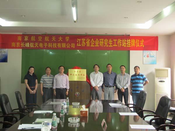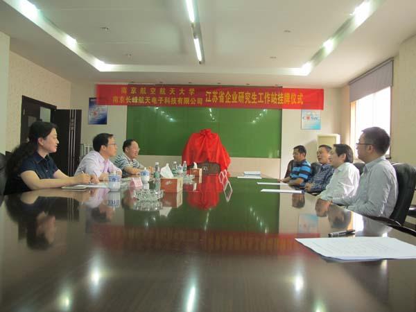 2015年05月25日,南京航空航天大学AWC万象城娱乐赖际舟副院长与企业联系导师盛守照教授学院教学办主任一起来到南京长峰航天电子科技有限公司,为南航大与长峰航天共建江苏省研究生工作站揭牌。长峰公司副总经理陆晓路、技术质量部主任李永明部出席仪式,仪式由总经理助理钱宇光主持。