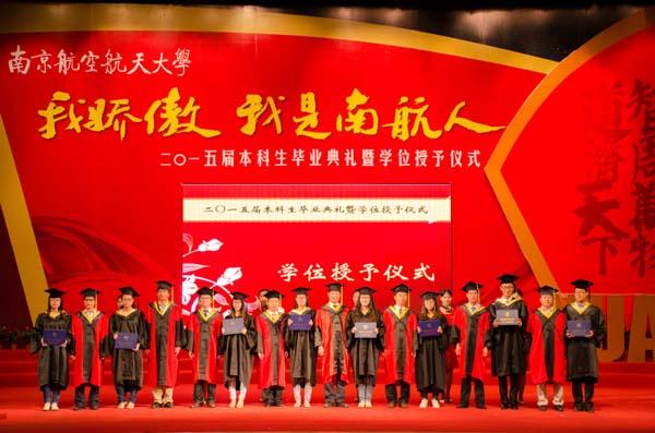 最后,典礼仪式在全体师生吟唱的南京航空航天大学校歌歌声中结束。“团结俭朴,唯实创新”是南航人的风格,“驭天马,牧群星”是南航人的境界,“智周万物,道济天下”是南航人的理想,2015毕业生将永远铭记于心,感恩学院,感恩南航。