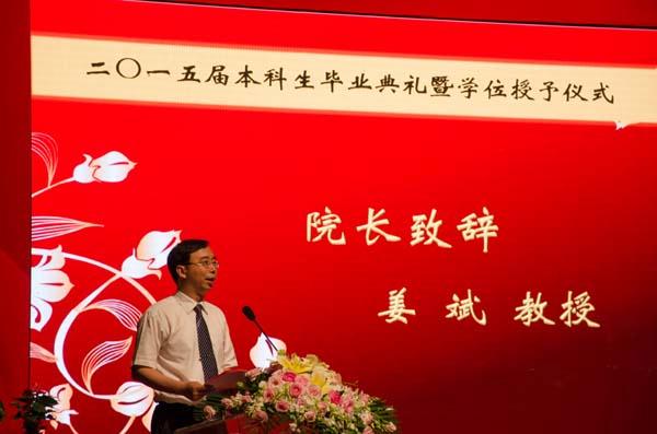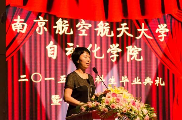 学院院长姜斌教授代表全院师生,向圆满完成学业的2015届全体毕业生们表示最热烈的祝贺和最美好的祝福。他肯定了2015届毕业生群体的优秀和进取,并用自控原理的专业语言向毕业生们生动诠释追求人生梦想、实现人生价值的过程,并寄语毕业生融入主流,勇担责任;善于学习,笃行进取;懂得感恩,知道进退和坚持锻炼、保持自省的期望与建议。最后祝愿所有毕业生们生活幸福,前程似锦。毕业生们报以热烈的掌声。