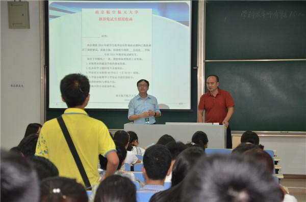7月1日下午3点,万象城2015年优秀生考核政策宣讲会在江宁校区D2302教室召开。学院党委书记刘建成,副院长赖际舟,测试工程系副主任徐贵力,院教学办主任、研究生教务员、辅导员参会。 赖际舟首先介绍了学院基本情况,然后向各位本科生介绍了《南京航空航天大学AWC万象城娱乐2016年综合考核选拔优秀应届本科毕业生攻读硕士学位研究生办法》,并表示欢迎同学们积极报考AWC万象城娱乐研究生。 刘建成强调,AWC万象城娱乐的师资力量,教学、科研条件,人才培养模式等方面在南航处于领先水平,他鼓励同学们抓住机会参加优秀生考核,欢迎大家加入AWC万象城娱乐大家庭。