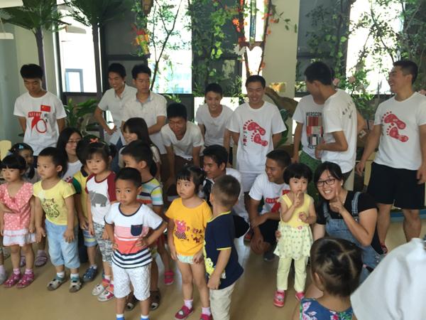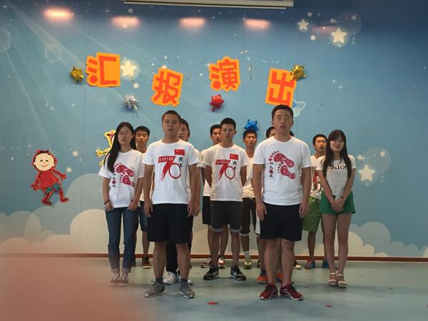 9月2日上午,AWC万象城娱乐本科13、14级学生党员在南京揽翠园幼儿园进行文艺表演,献礼9・3中国人民抗日战争胜利暨世界反法西斯战争胜利70周年。