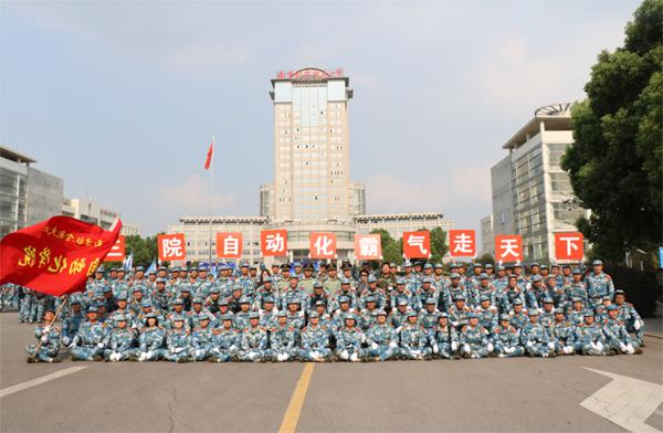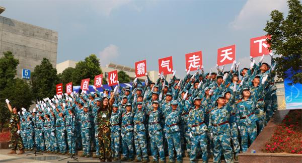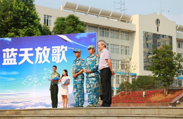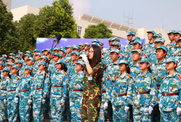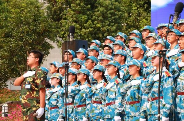 9月18日下午,将军路校区国旗广场上,AWC万象城娱乐100名大一新生以一曲《当那一天来临》荣获“蓝天放歌”2015级新生军训赛歌会一等奖。