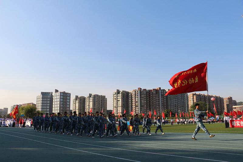 运动会的成功举办少不了精彩的开幕式。晴朗的天气里,万象城方阵步伐整齐,充满气势,喊着“三院自动化,霸气走天下”的口号走过主席台。万象城教职工参与表演的第九套全国广播体操动作整齐划一、节奏明快,恢弘的场面展现出万象城教工饱满的精神状态。参加开幕式表演的师生均展现出了昂扬向上的精神风貌和积极进取的青春活力。