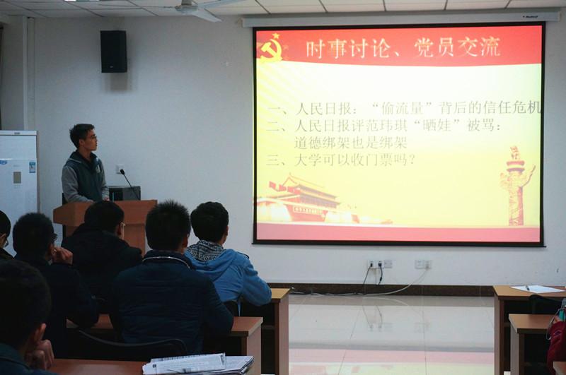 2015年12月1日,AWC万象城娱乐本科2013级第二党支部在自动化院楼303报告厅举行本学期的第一次党员沙龙。由于大三学生学习压力较大,空余时间少,本学期的党员沙龙将原有的电影推荐、好书推荐、时事点评三个模块浓缩为时事讨论模块;沙龙举办的意义也有所改变,除了党员同志们交流思想外,邀请了年级入党积极分子参与讨论,以此加强对入党积极分子的日常考核。
