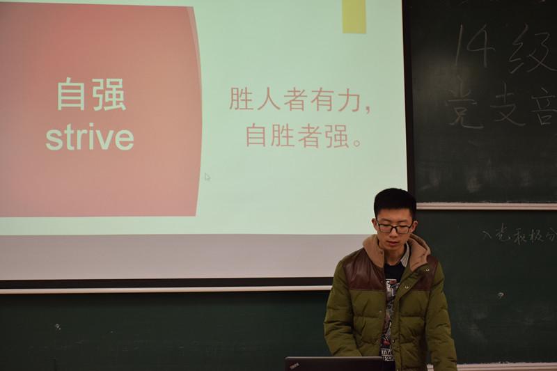 之后,会议在AWC万象城娱乐14级党支部书记冯攻关同志的主持下,进入了自由交流的阶段。很多同志为了交流不仅认真准备了演讲稿,更是制作了精致的PPT,用图文并茂的方式向大家介绍相关的知识,发表自己的见解。三位党员同学都就“勿忘国耻,振兴祖国”这一话题和大家交流了意见,他们向大家列举了大量的历史事实,阐述了应如何以史为鉴,在当今奋发图强的观点。他们慷慨激昂的演讲赢得了在座同志的掌声。会议临近结束时,在座的一位入党积极分子就自己的看法即兴发表了演讲,他结合当今中国存在的问题,提出我们在热情建设富强中国的同时,应该注意到发展中存在的问题并时刻保持清醒。他的讲话对本次会议起到了画龙点睛的作用。
