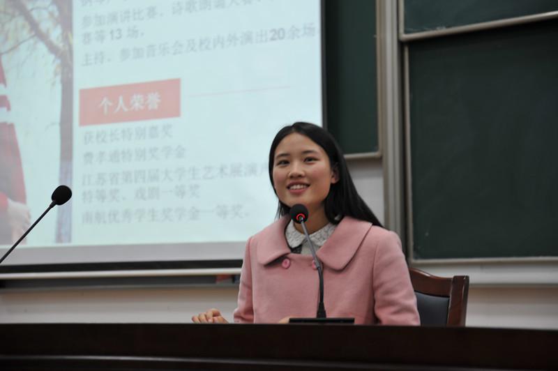 宣讲环节中,首先是颜晔同学进行了以“读万卷书,行万里路”为主题的宣讲。颜晔大一、大二学年GPA均列专业第一,多次获得科创竞赛奖项,他从学业成绩、学科项目、科创比赛、创新项目、梦想启航五个方面向学弟学妹们分享了他眼中的大学之学。他说:“大学之大,不在于大,而在于学。”接下来,是曾担任南京航空航天大学校学生会主席的尤一伟同学讲述了他大学里与学生工作相伴的成长故事,他特别强调做学生工作应怀有一颗纯粹的心,不为名、不为利,只要在工作的过程中能够锻炼提高自己的能力就是最大的收获。接着,由百花奖得主孙林楠同学上台分享了她的追寻艺术之路,并针对如何协调学业和兴趣的关系问题提出了宝贵的建议,使两者相互促进,互为灵感。最后,在前不久刚结束的第十四届“挑战杯”全国大学生课外学术科技作品竞赛中获得全国特等奖的尹彦卿同学分享他的科创经验。他语言风趣,从科创体验、所需知识、常见竞赛分类等方面让同学们切实地对科创有了进一步的了解。