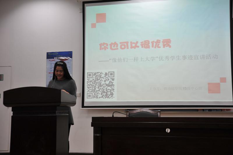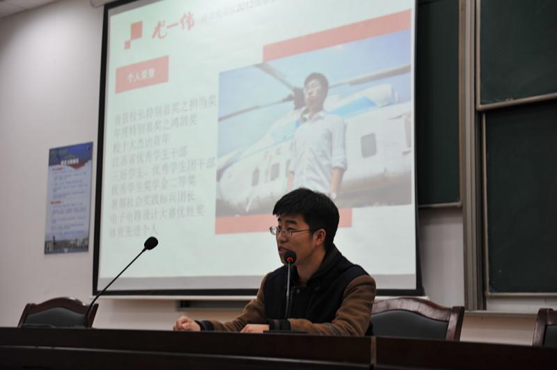 2015年12月22日下午4:00,万象城2015级于D1213成功举办“像他们一样上大学”优秀学生事迹宣讲活动。此次宣讲活动旨在进一步发挥学生的朋辈教育作用,激励更多学生适应大学生活、学习,明确目标,全面发展,从而推动优良学风建设。活动邀请到13级工研班学生颜晔、12级学生尤一伟、孙林楠以及尹彦卿共四名优秀学生,15级辅导员孙瑜、黄巍导员、臧珂出席,15级近600名同学参加了本次宣讲会。
