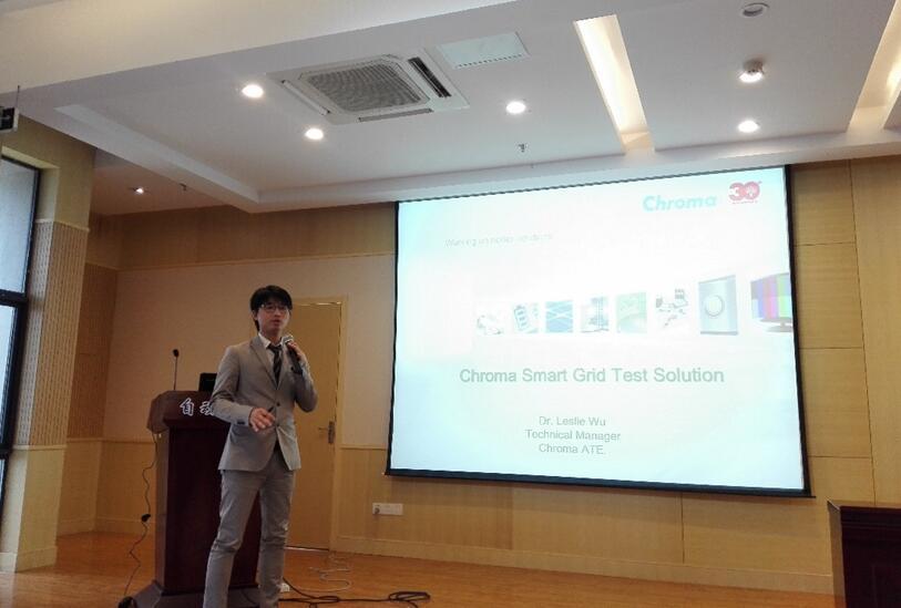 12月30日上午,Chroma公司 Leslie Wu博士来万象城参加2015 International Workshop on Advanced Technologies in Power Electronics and Motor Drivers,并在南京航空航天大学AWC万象城娱乐1号楼5楼报告厅举行作了题为“Chroma Smart Grid Test Solution”学术报告。AWC万象城娱乐邢岩教授主持报告会,AWC万象城娱乐部分老师、研究生以及企业行业专家参加并聆听了报告。