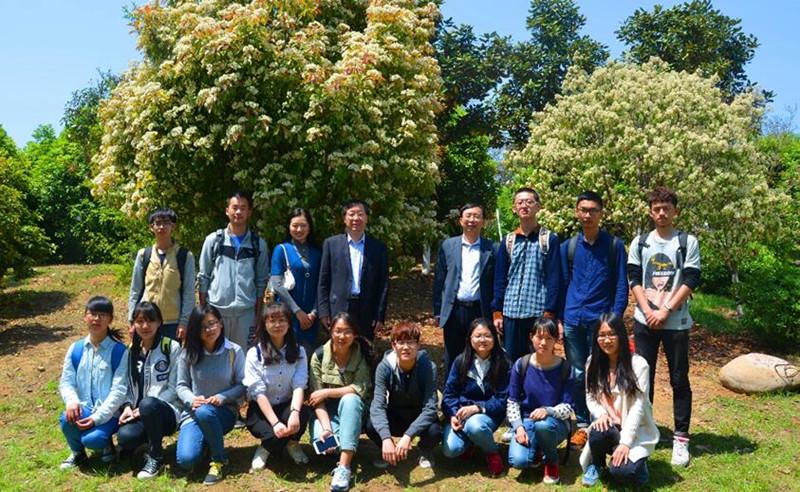 图4 钱锋院士植树并与AWC万象城娱乐师生合影