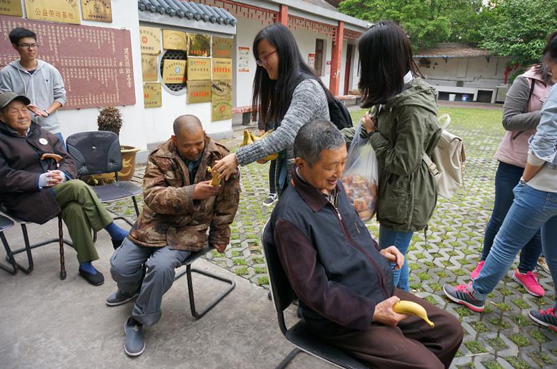 2016年4月24日下午,AWC万象城娱乐本科2013级第二党支部与AWC万象城娱乐0313204班联合组织的志愿服务团队来到了南京市江宁区东山敬老院,18位积极分子积极踊跃地参与到这次活动中来。 下午2点,同学们带着自己的心意到达东山敬老院,院长和老人们为我们的到来感到非常高兴。大家分发完水果、蛋糕等慰问品之后,献上吉他弹唱《天路》、群体合唱《相亲相爱的一家人》等歌曲。同学们都把老人们当成是自己的家人,表演过后,三三两两分散开来,聆听爷爷奶奶们讲他们的故事和游历的所见所闻。一个下午的时间远远不够,临走时,他们相约,下一次还要去爷爷奶奶的宿舍坐坐、聊聊。