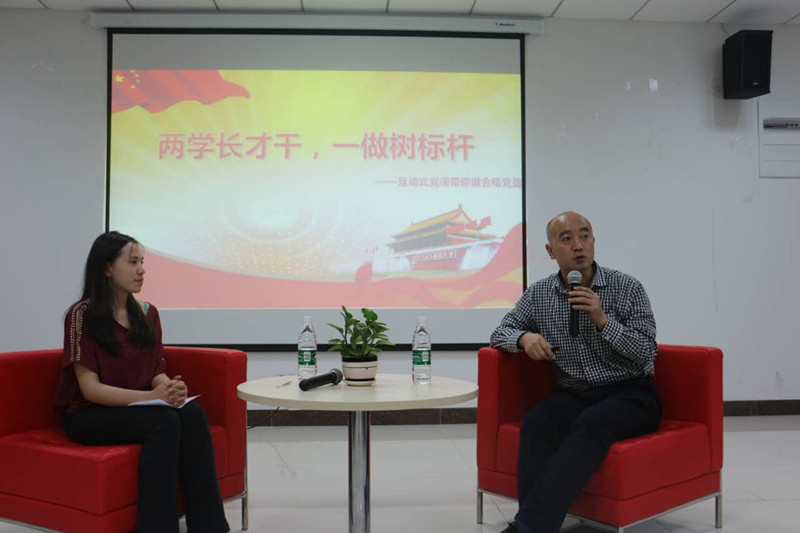 6月7日晚,AWC万象城娱乐“‘两学’长才干,‘一做’树标杆”互动式党课在将军路校区开展,AWC万象城娱乐党委书记刘建成担任主讲人,学院五十余名本科生党员及入党积极分子参与学习交流。