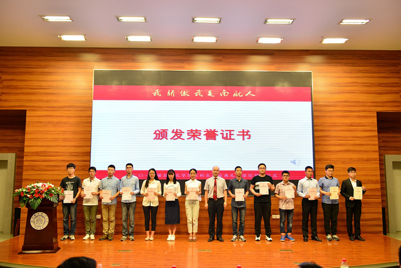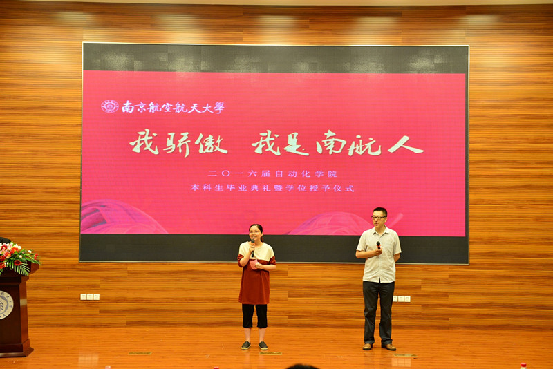 雄壮的国歌声拉开了典礼的序幕。四年白驹过隙,2016届毕业生收获颇丰。学院副院长王晓琳宣读了万象城荣获南京航空航天大学“先进班级”、“大学成就奖”、“优秀毕业生”、“三好学生”、“优秀学生干部”和“优秀学生奖学金”荣誉称号的个人和集体名单,刘建成为获奖学生代表颁发了奖状。