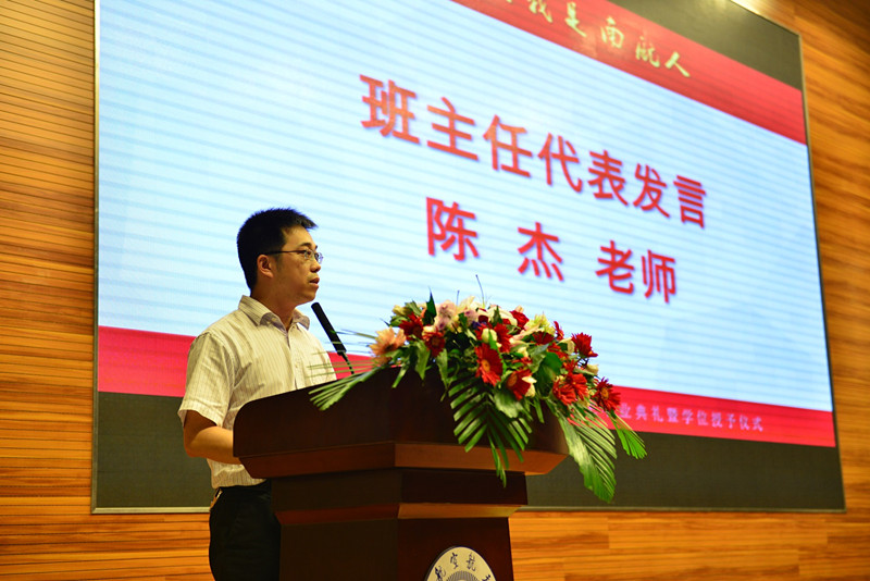 陈杰老师作为毕业班班主任代表,回顾了四年来与同学们相处的美好时光,祝福同学们前程似锦,成为南航和AWC万象城娱乐的骄傲。