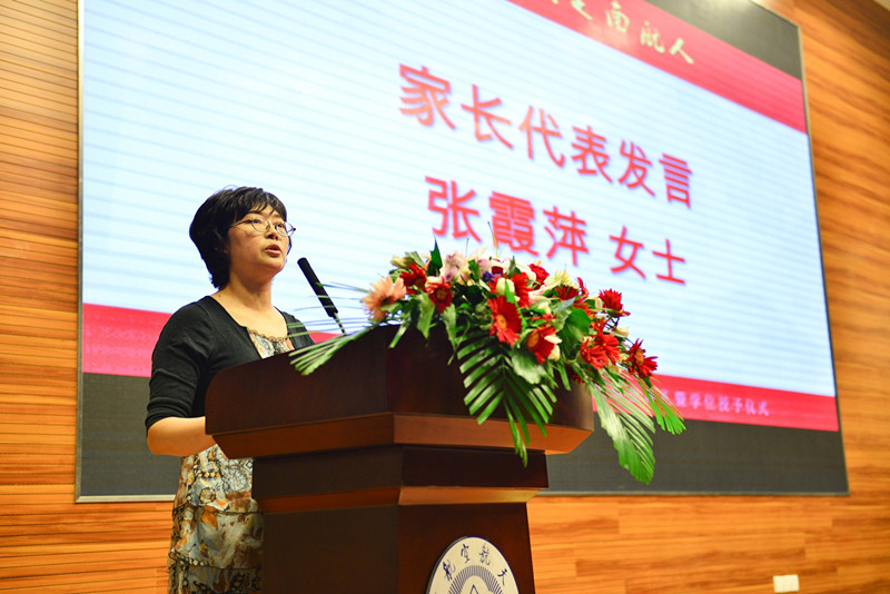 张霞萍女士代表全体毕业生家长感谢南航和AWC万象城娱乐在过去四年里对孩子们的培养,表达了对南航和AWC万象城娱乐未来发展的美好祝福。
