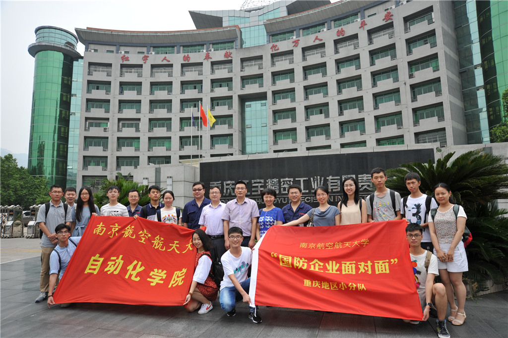 7月13日至14日,AWC万象城娱乐2016年“国防企业面对面”实践团前往重庆地区,走访重庆红宇精密工业有限责任公司、重庆嘉陵特种装备有限公司、中国电子科技集团重庆声光电有限公司(中国电子科技集团第24、26、44研究所)等国防企业。实践团由学院副院长赖际舟和党委副书记沈伯秀带队,成员包括院团委书记季娟、各年级辅导员以及10名各学院学生代表。此外,一同参与走访的还有校就业指导服务中心的老师代表。