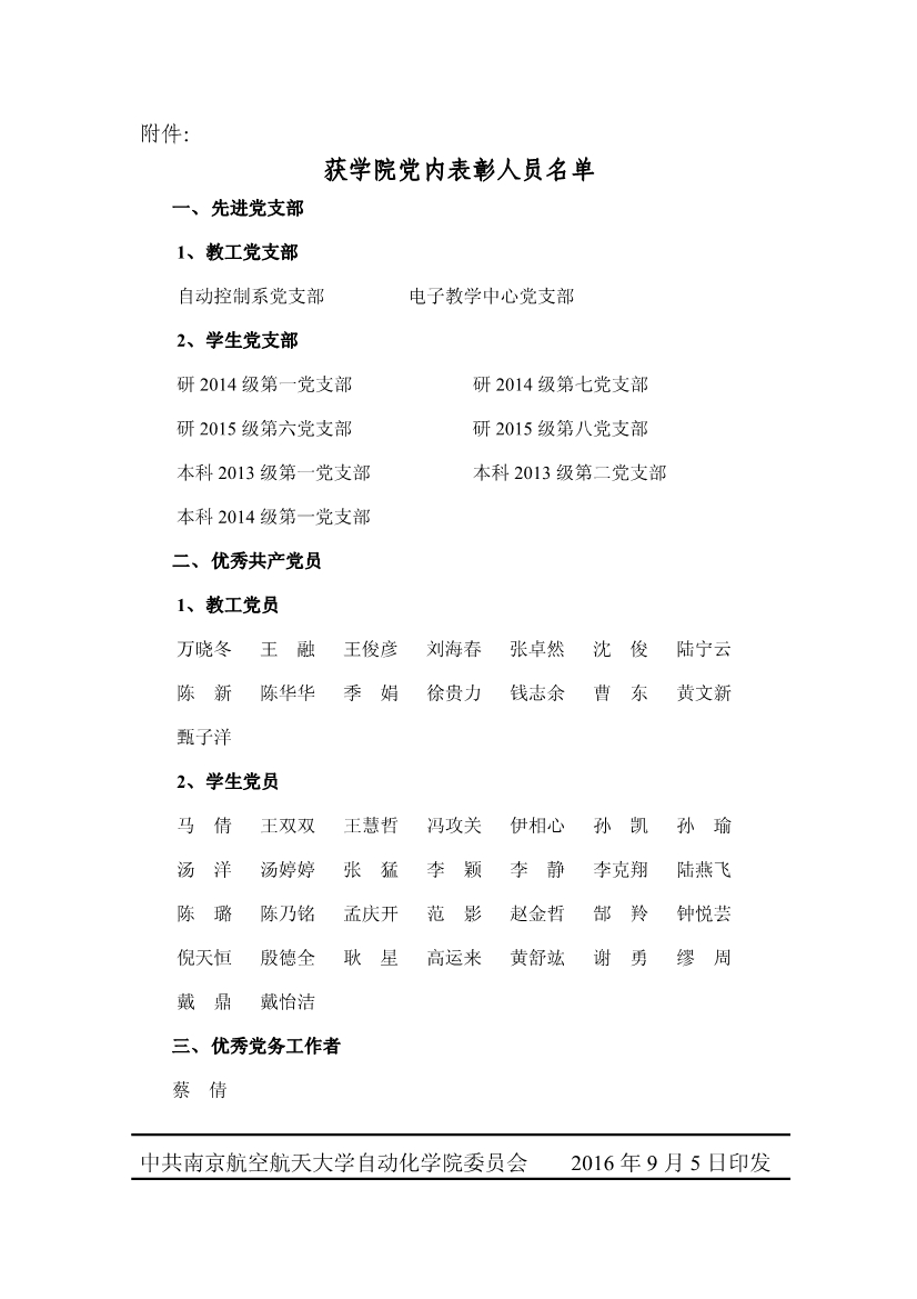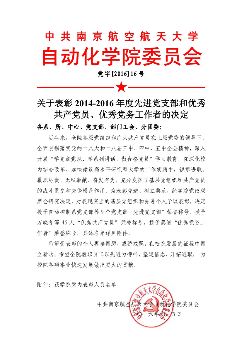 关于表彰2014-2016年度先进党支部和优秀共产党员、优秀党务工作者的决定