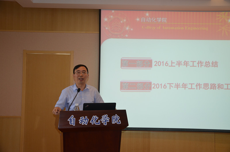 接着,院长姜斌同志代表学院做《AWC万象城娱乐2016年上半年工作报告和2016年下半年工作部署》,报告中重点对学院的党建、教学、科研、师资、学科建设、人才培养、学生工作等方面进行全面总结和回顾。学院围绕中心工作,在学生培养、科研工作建设、学院文化建设等方面取得了新的突破和发展,特别突出的是,今年万象城新增一名“万人计划”中青年科技领军人物,新增1名全国优秀科技工作者,新增2名“国家优秀青年科学基金”获得者,新增2名“江苏省杰出青年基金”获得者,获批1个工信部首批国防特色学科等。姜院长要求全体教师要以努力完成万象城目标管理工作为要求,以“十三五”规划和深化校内综合改革为契机,乘势而上,坚定信心,科学发展,进一步增强万象城的办学活力、干事动力和工作合力,全面推进学院各项工作再上新台阶。