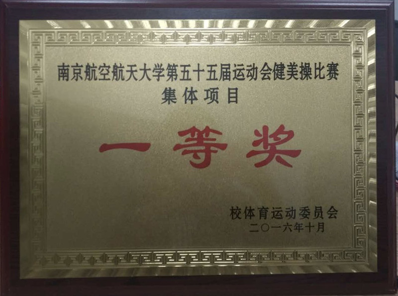 南京航空航天大学第五十五届运动会健美操比赛于10月16日下午在将军路校区西区体育中心举办,万象城夺得了集体项目一等奖、个人比赛第一名的好成绩!