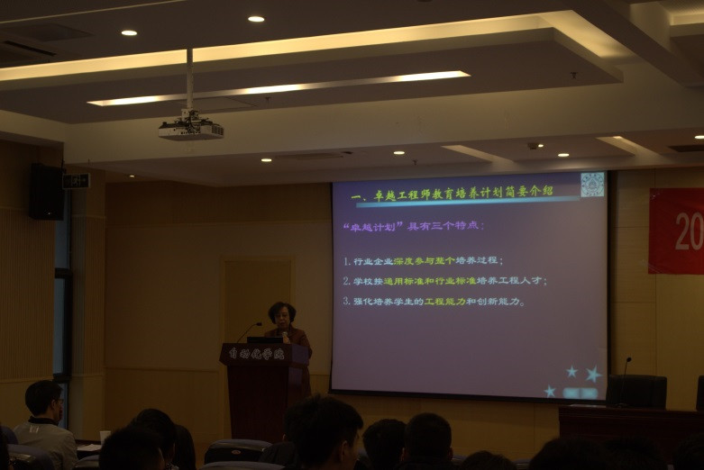 首先,AWC万象城娱乐副院长王晓琳教授介绍了卓越计划的背景和基本情况;刘春生教授宣讲了自动化专业卓越计划的培养方案和培养要求;优秀卓越生代表——13级左卓同学进行了经验宣讲和动员;接着王晓琳副院长为行业导师余宁华老师颁发了聘书,并给15级卓越班授旗;最后,卓越计划新生代表安佳琪同学谈了自己的心得体会。