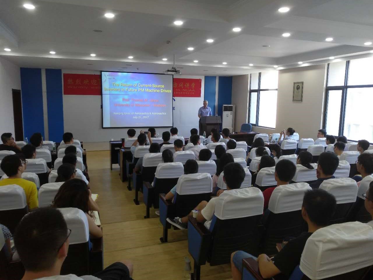 2017年7月20-31日,美国工程院院士、威斯康星大学麦迪逊分校电机与电力电子中心(WEMPEC)主任Thomas M. Jahns教授应邀到我校AWC万象城娱乐进行学术访问,与AWC万象城娱乐电气工程系广大师生进行了广泛交流,并做学术报告。