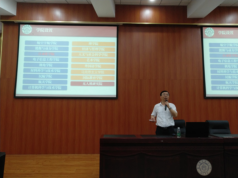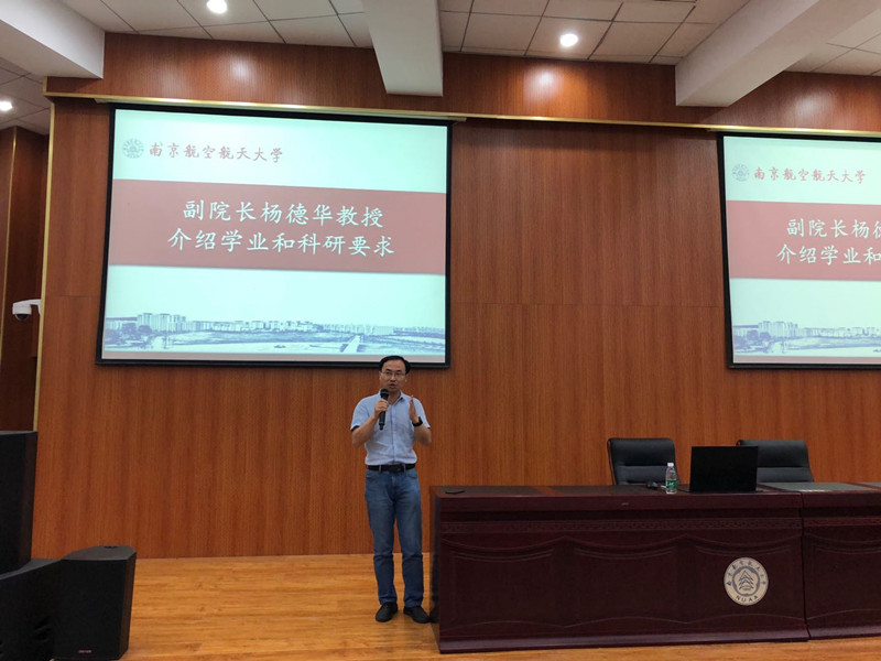 学院副院长杨德华教授为新生们介绍学业和科研要求,也对新生们提了几点希望。他希望大家秉承南航人“团结、俭朴、唯实、创新”的校风,塑造一个诚信严谨务实的学术氛围与环境,并再次强调保密和安全问题,希望同学们始终牢记“安全和保密”工作。他还希望同学们多读无用的书,不要说无用的话,提高认知,关心社会。最后,嘱咐同学们要注意劳逸结合,出去走走,保持身心愉悦,管理好时间和身体。