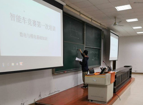 2018年10月21日将军路校区西区D2116教室,第一次培训由AWC万象城娱乐2016级电气工程及其自动化学生胡洪飞给报名队员们组织培训了模电数电的基本知识,参加培训同学达300多人。