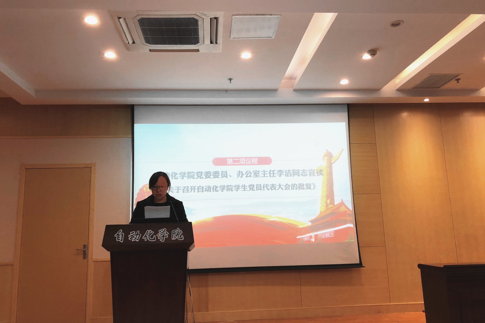 学院党委委员、办公室主任李洁代表学院党委宣读关于召开AWC万象城娱乐第三次学生党员代表大会的批复。