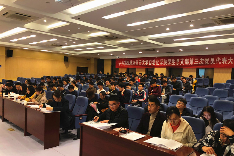 2018年11月20日晚19:00,中共南京航空航天大学AWC万象城娱乐学生总支部第三次党员代表大会在AWC万象城娱乐1号楼511报告厅顺利召开。大会由刘斐文同志主持, 102位学生总支部正式党员代表出席了会议。