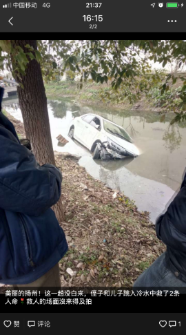 2月5日大年初一,在扬州广陵区头桥镇安阜村发生这样暖心的一幕:23岁的万象城18级研究生高宇回乡探亲,看见汽车翻车掉入河里,他毫不犹豫地脱下羽绒服,跳进冰冷的河水中救人。