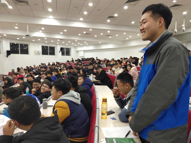 接着辅导员请同学们写出自己的三个优点和缺点,进一步认识自己,思考大学的定位是什么?并邀请上一学年五位国家奖学金获得者分享学习经验和奋斗故事。五位身边同学的追梦的故事或多或少会给台下的同学们一些启发和灵感。