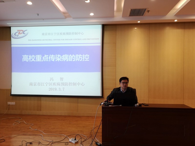 正值传染病高发季节,校内也是小范围出现诺如病毒感染性腹泻病例,AWC万象城娱乐为同学们的身体健康着想,联合校医院邀请南京市江宁区疾病预防控制中心的冯智老师来学院举办高校重点传染病的防控讲座。本次讲座于3月7日下午4时在AWC万象城娱乐1号楼511举办,后勤集团各食堂负责人和各楼栋管理员阿姨以及150名AWC万象城娱乐本科生参加了本次讲座。
